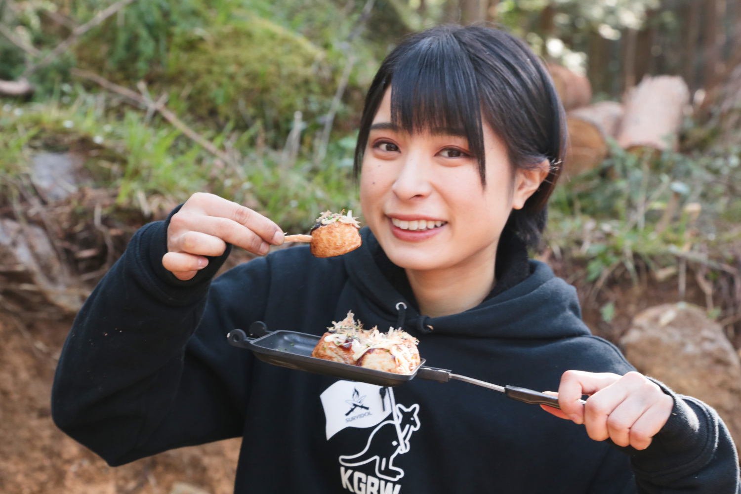 ナイフの選び方と使い方、焚き火のコツ、失敗しない着火方法、飯盒料理などなど。かほなんが、自分自身で習得したというオリジナルのアイデアも満載だ。