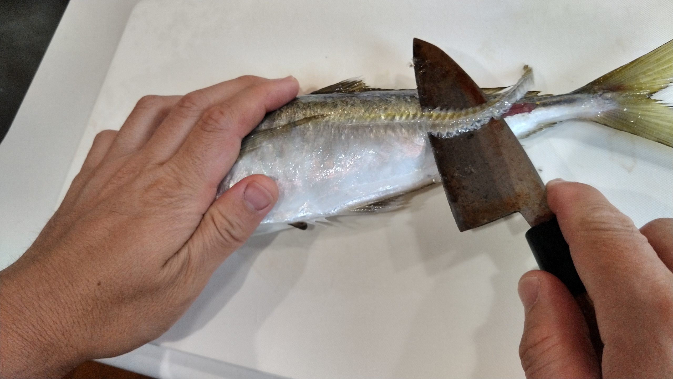 尾びれはそのままでも三枚おろしにできますが、切り落としたほうがやりやすいです。