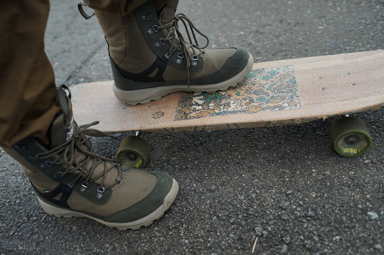 スケートボード、スノーボード、そして雪板のパイオニア・五明淳氏のアイディアをカタチにした、街から雪寒地まで、天候やシーンの境界線を越えてウィンターシーズンをアクティブに快適に過ごすためのウィンタースニーカーが誕生した。