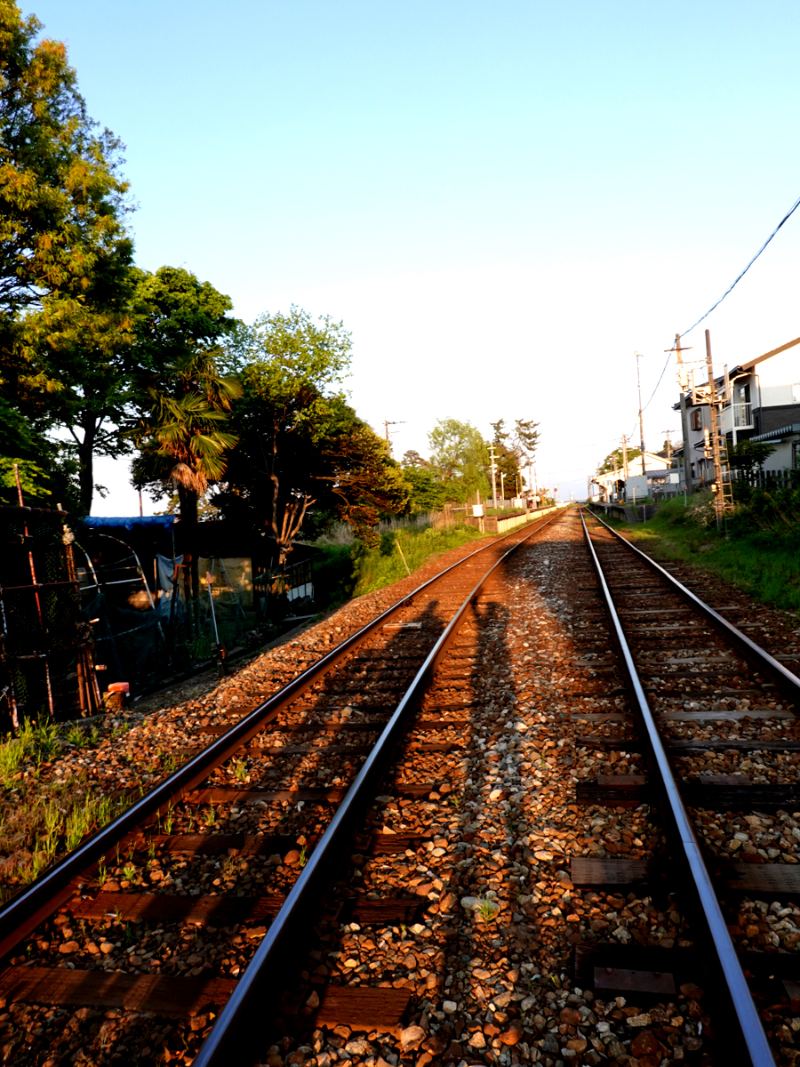1時間に1~2本の電車が通るJR氷見線です。味わい深い踏切を渡って海岸線に向かいます。伸びた影がいい感じ!