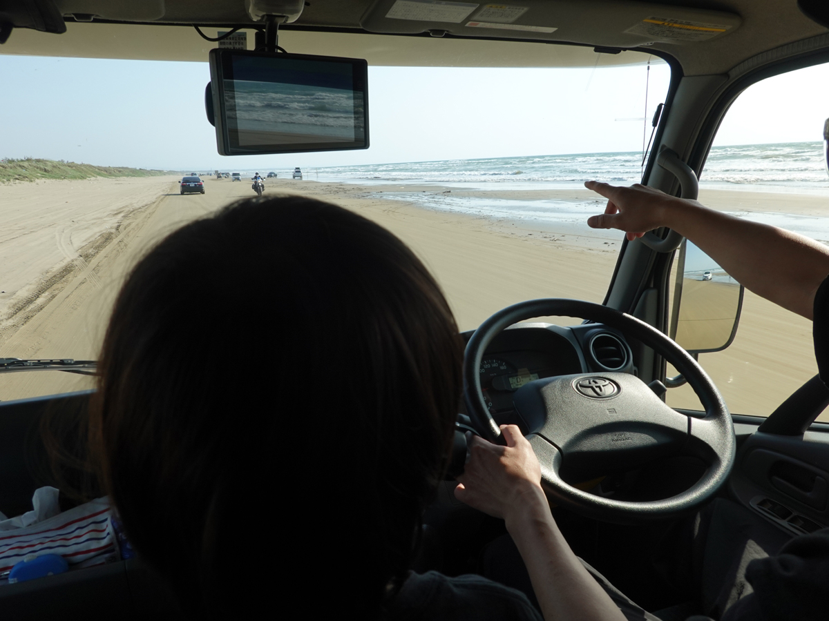 波打ち際から少し内陸に寄った浜では、砂が締まっておらずスタックしているクルマも見かけました。行かれる方は気をつけてくださいね。