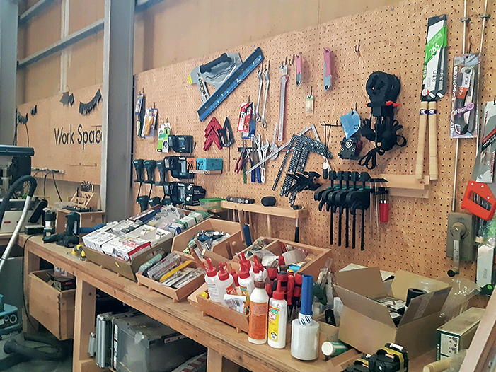 レンタル工房内の工具はすべて料金に含まれている。専用ロッカーは月額2,200円で借りられる。