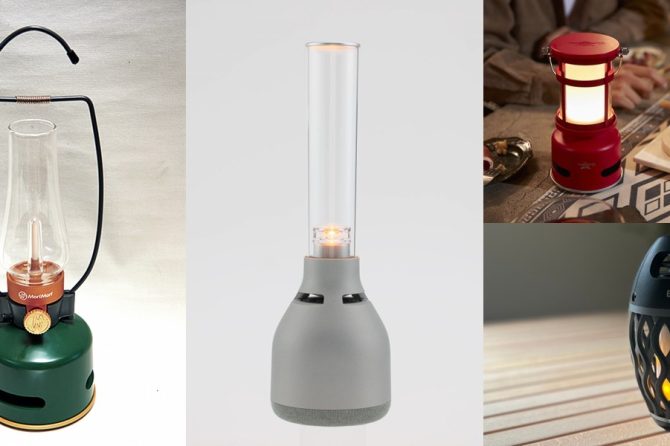太陽光で充電するソーラーパフライト。電池が不要で、太陽さえあれば繰り返し使えることから防災グッズとしても人気が高い。キャンプ場ではテントの中で使って、自宅では就寝時のベッドサイドランプ代わりするのも便利。空気で膨らます仕様はとても軽くて安全だ。