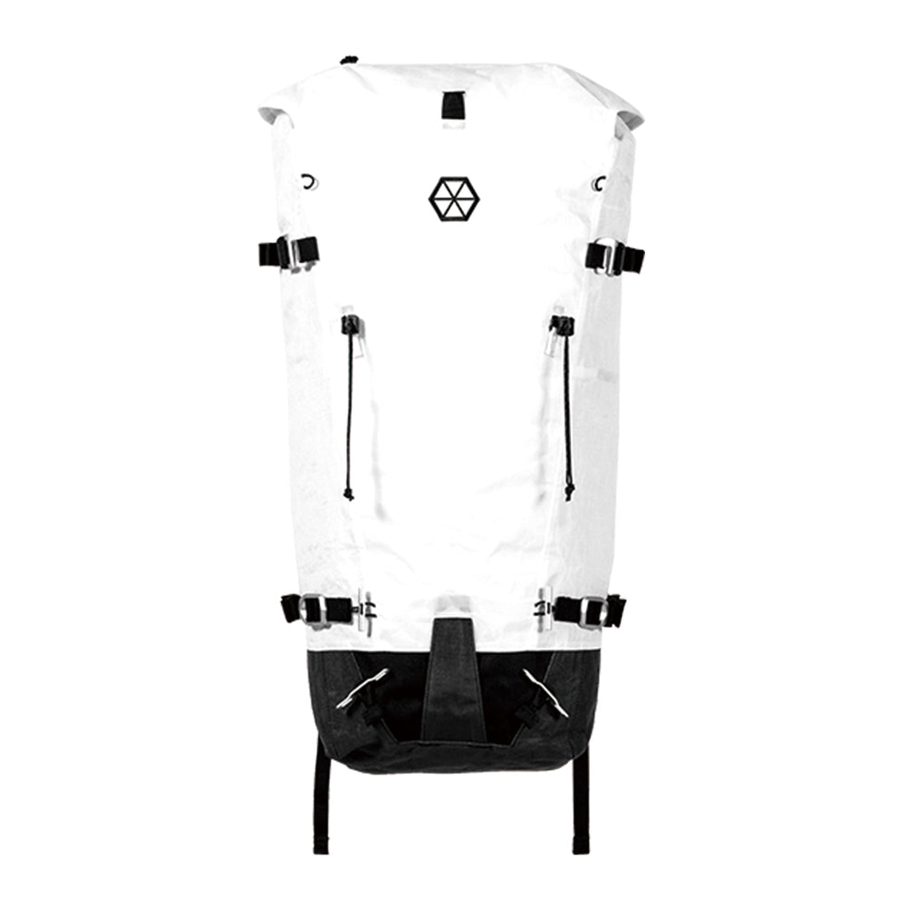 重さ840g、容量40Lの軽量バックパックです。各所に付属したピッケルホルダー、ヘルメットホルダー、スキーラック、ベルトなどのアクセサリーは取り外し可能で、すべて外すと重量が495gになります。