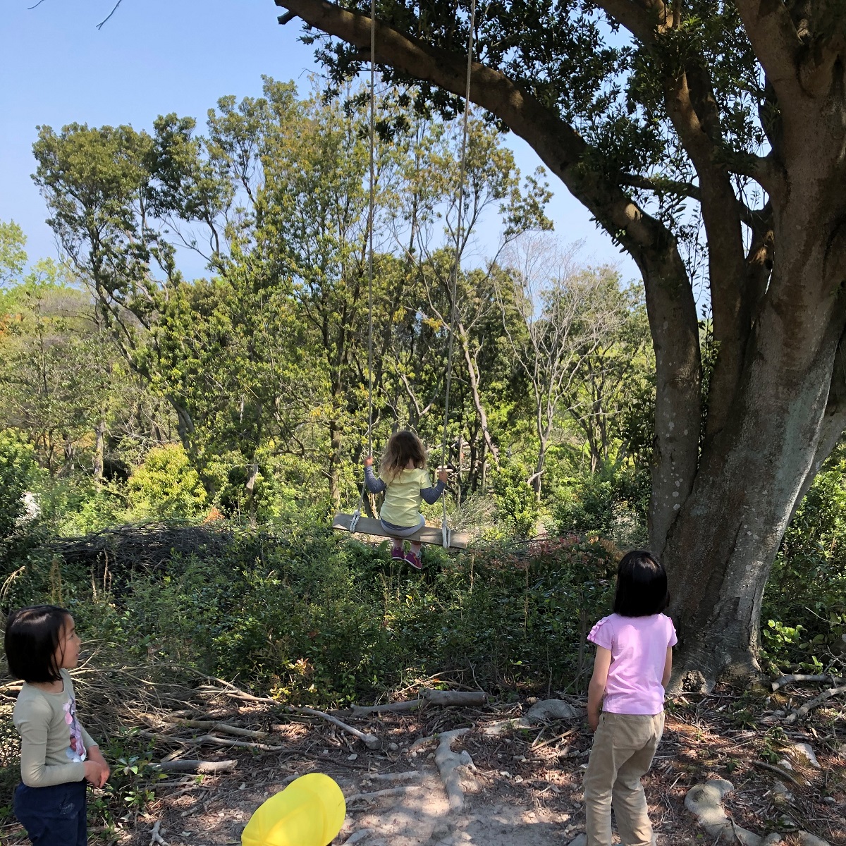 その後坂を登ると、初めに見えるのはアスレチックコース! しかもなかなかの規模で、3歳~小学校高学年くらいまでと幅広い年齢の子どもが楽しめます。大きな木に吊られたブランコや長い滑り台もあり、大興奮することは間違いなし。