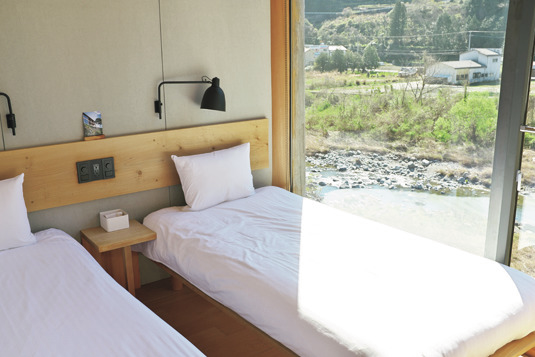 2015年にオープンした「WEEK神山」。神山町での働き方を体験できる、滞在型宿泊施設で、ワークショップや映画上映会も開催している。