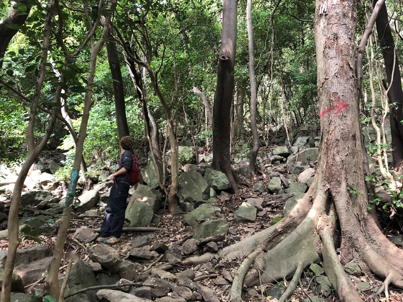 このルートは、岩場もなく森の中を抜けていくだけの道です。地元の方が紐で道しるべをつけてくれているのでほぼ迷わず行くことができます。
