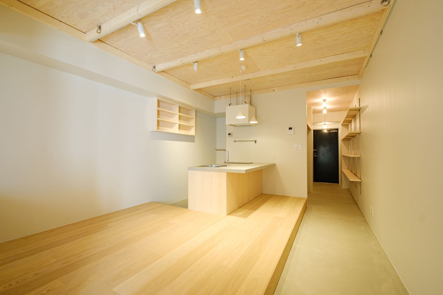 玄関からベランダまで土間が続くリノベーションのお部屋。