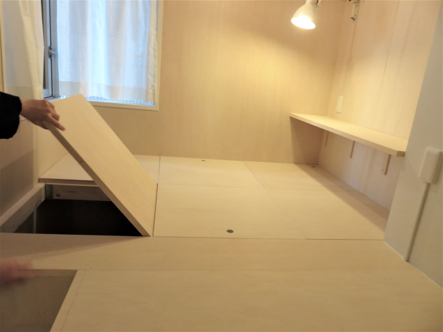 3段にしているのは空間の変化だけでなく、大きな収納スペースとして有効活用できます。