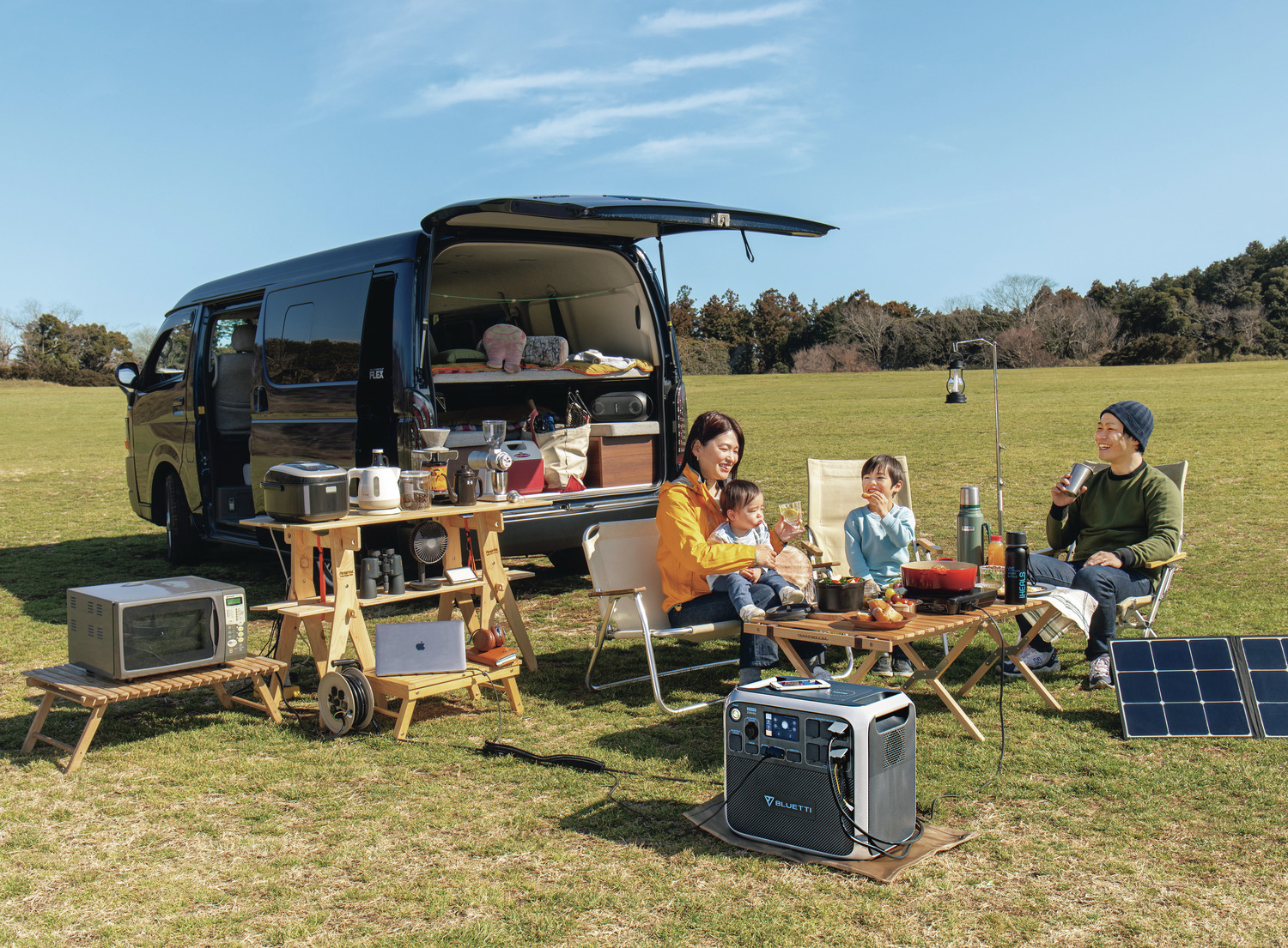 ポカポカ陽気に誘われて、はじめてキャンプに挑戦! といきたいところだが、いきなり道具を全部そろえるには費用がかさむし、1歳の赤ちゃんを抱えてのキャンプはちょっと……、と不安を隠せないママ。「それなら、車中泊キャンプって手があるよ!」と、パパが攻勢の一手。取り出したのが、BLUETTI(ブルーティ)のポータブル電源AC200P。