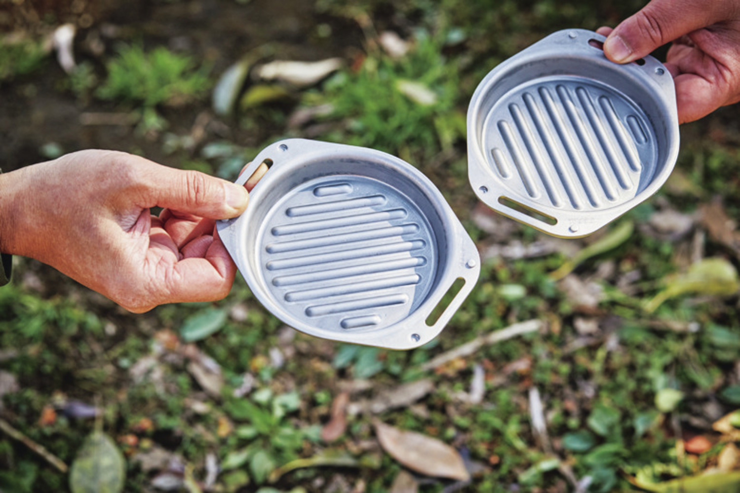 さらに、友達も持ってたりして、2枚そろうと奇跡の始まり! なんと簡易なホットサンドメーカーに早変わりしちゃう。いろんな食材に焼き目をつけてキャンプを楽しもう!