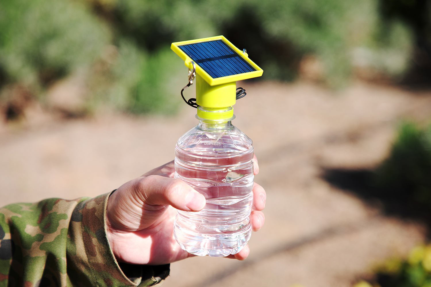 ペットボトルにセットすると斜めに向くようになっており、定期的に太陽の方向に向きを変えなくても安定して給電できるのがいいですね。