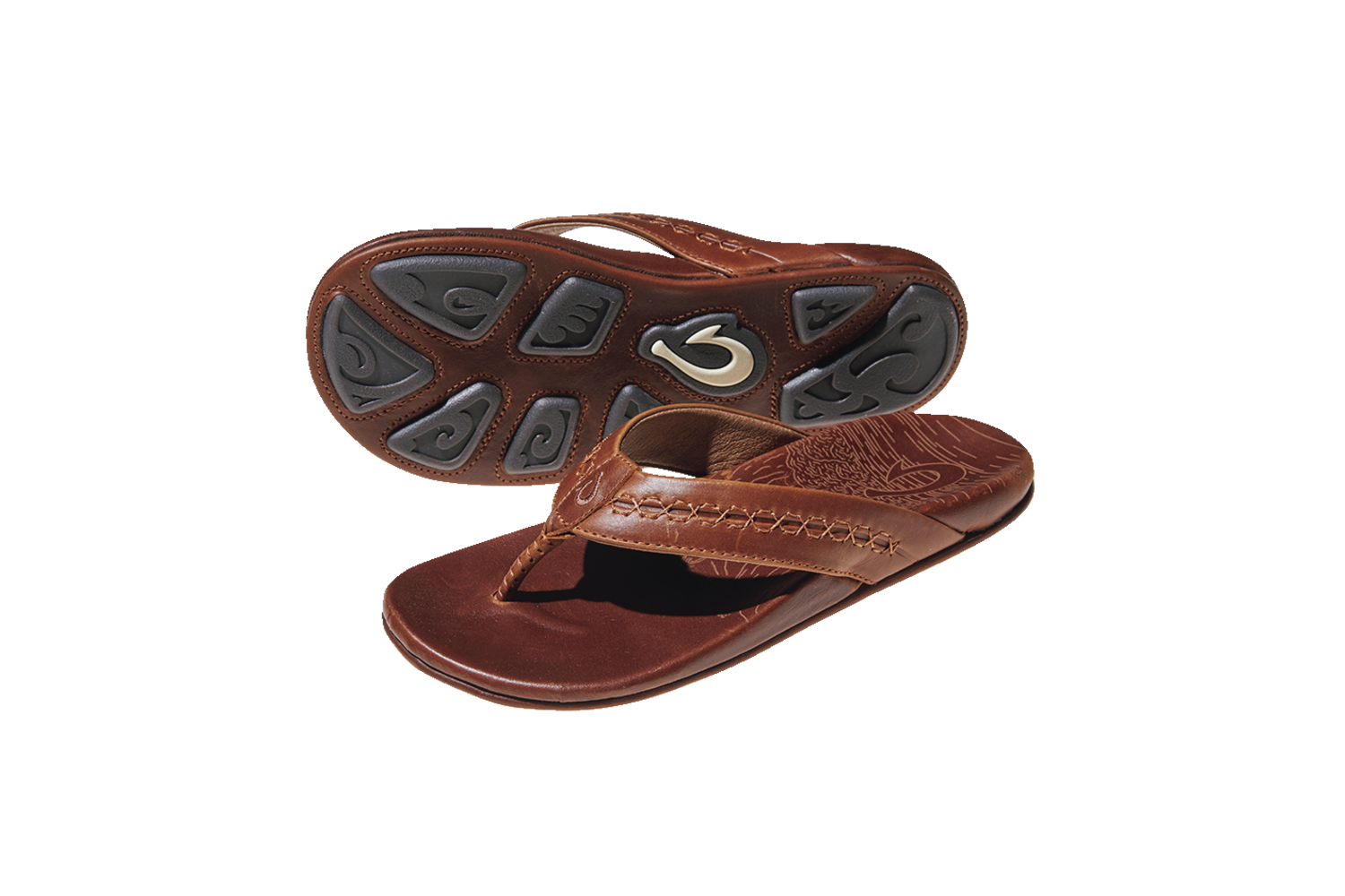 鼻緒、フットベッド、ソール面まで、すべてがフルグレインレザー製。見てのとおり、本当にカッコイイ!圧縮EVAを内蔵したフットベッドは、生体工学に基づいてデザインされている。
