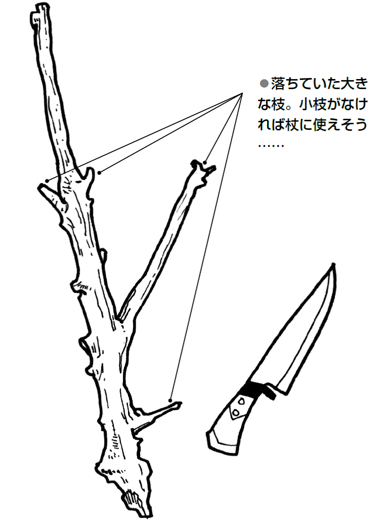 ※落ちていた大きな枝。小枝がなければ杖に使えそう……。