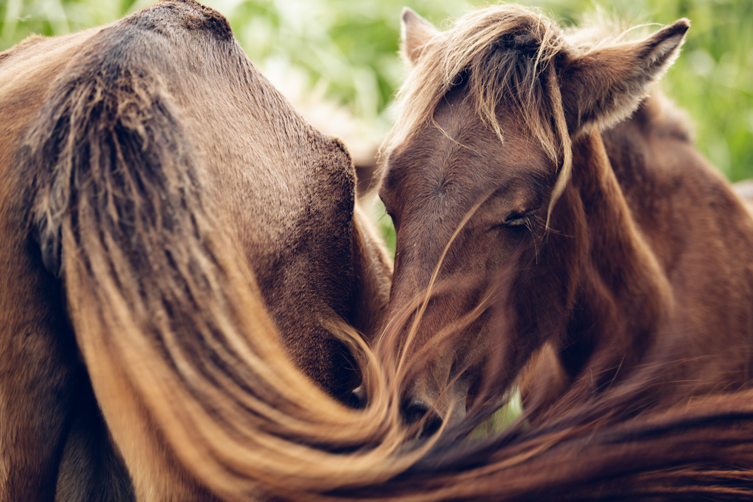 「与那国島は日本最西端に位置し、隣接する台湾まで約110kmの国境の島。八重山の島々の中でも特に、”何もない”がある、のが魅力の、小さくて静かな島です。そんな与那国島に初めて訪れたのは12年ほど前、一時的に石垣島に移り住み八重山の島々をめぐって撮影を続けていた時でした。ハンマーヘッドシャークの群れを撮影することが目的で与那国島を訪れたのですが、特に冬の与那国島は風が強く、海は流れが早い。厳しい環境での撮影に疲れ切っていた時、気分転換で島を散策していて出会ったのが、野生に近い状態で放牧されている与那国馬でした」(岡田さん、以下同)