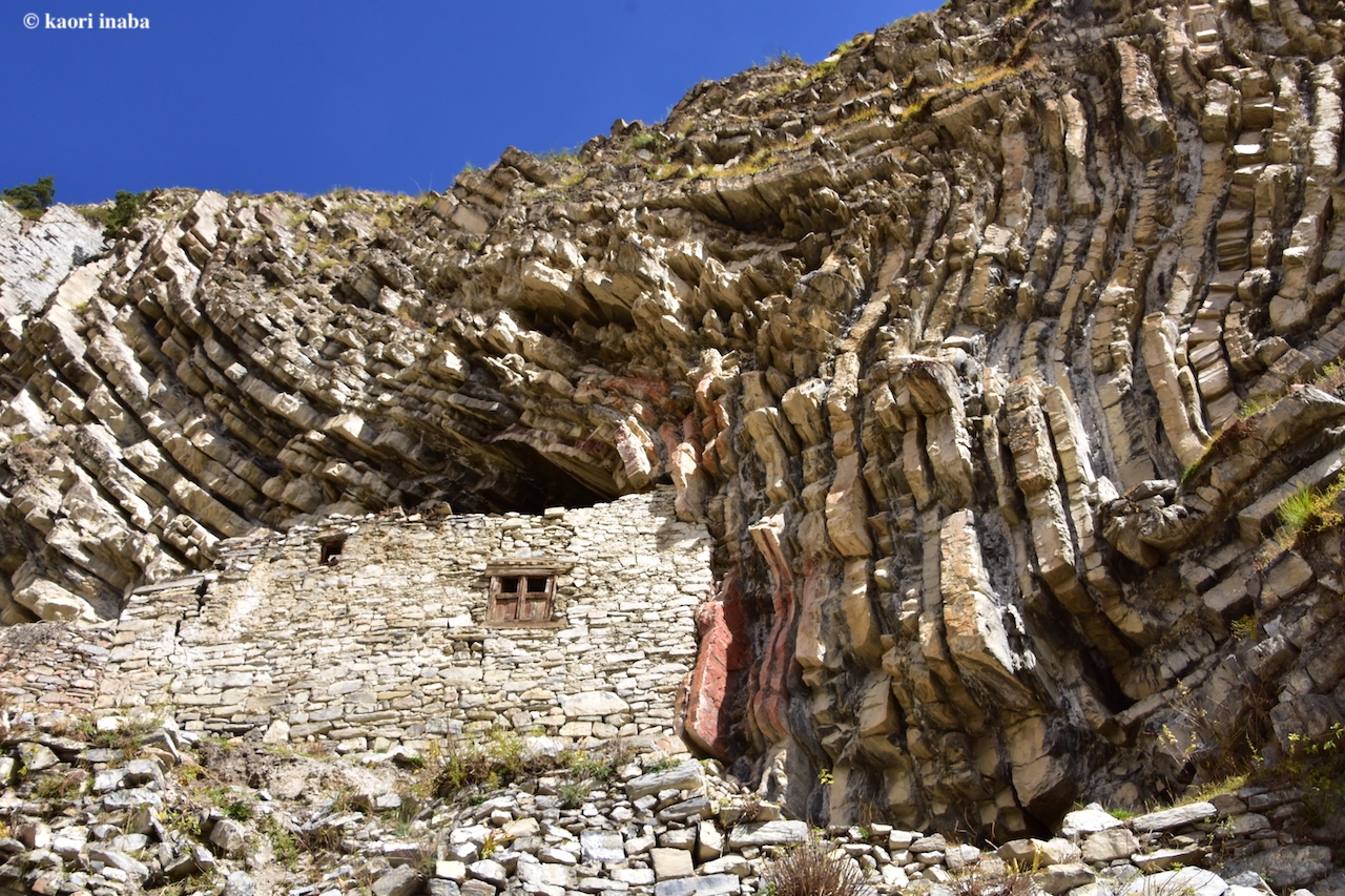 ロワー・ドルポにある、断崖に埋め込まれるように建てられた僧院の跡。 ©Kaori Inaba
