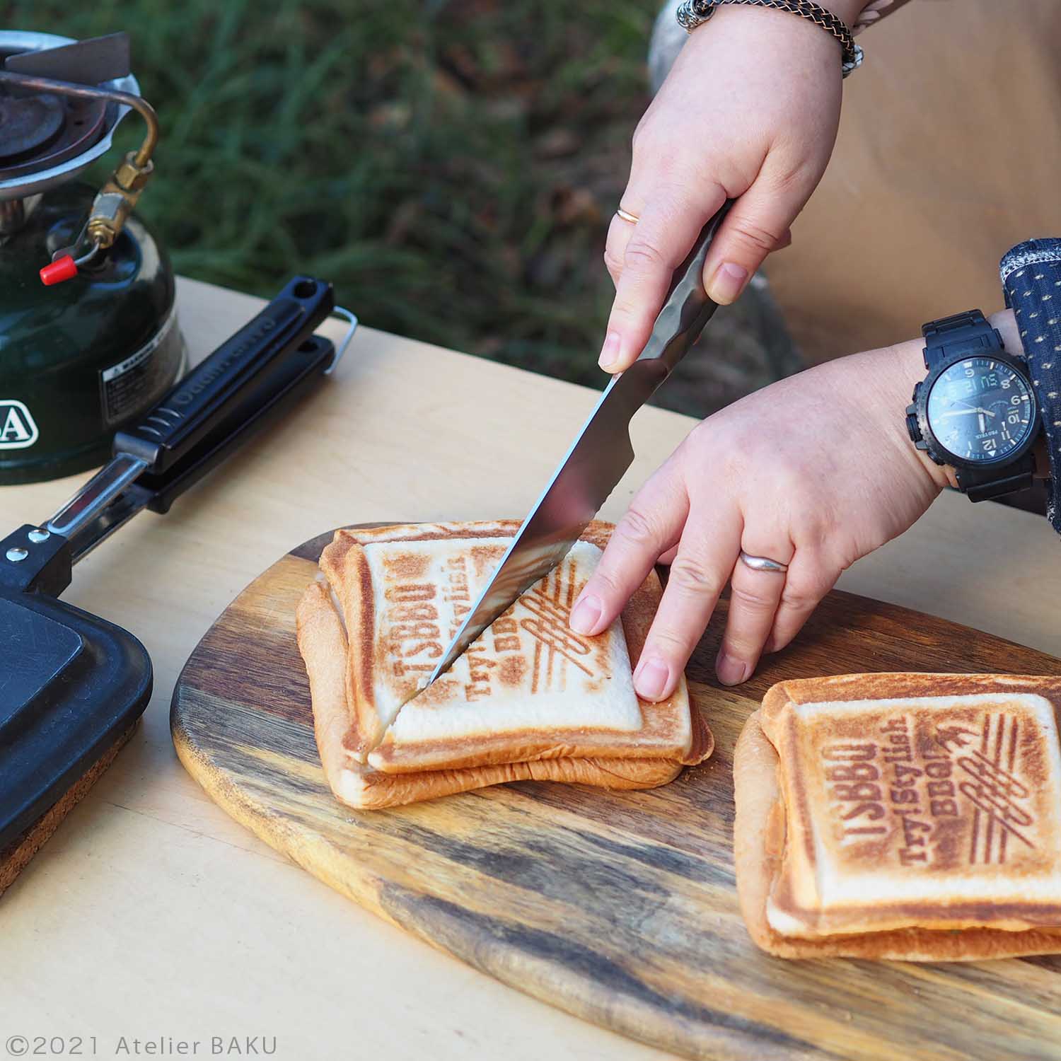 手軽に作れて食べやすく、キャンプの朝ごはんや軽食にぴったりな、バゲットサンドやホットサンド。普通の包丁では潰れてしまったり、パンと具材が崩れたりと、なかなかうまくカットできないもの。