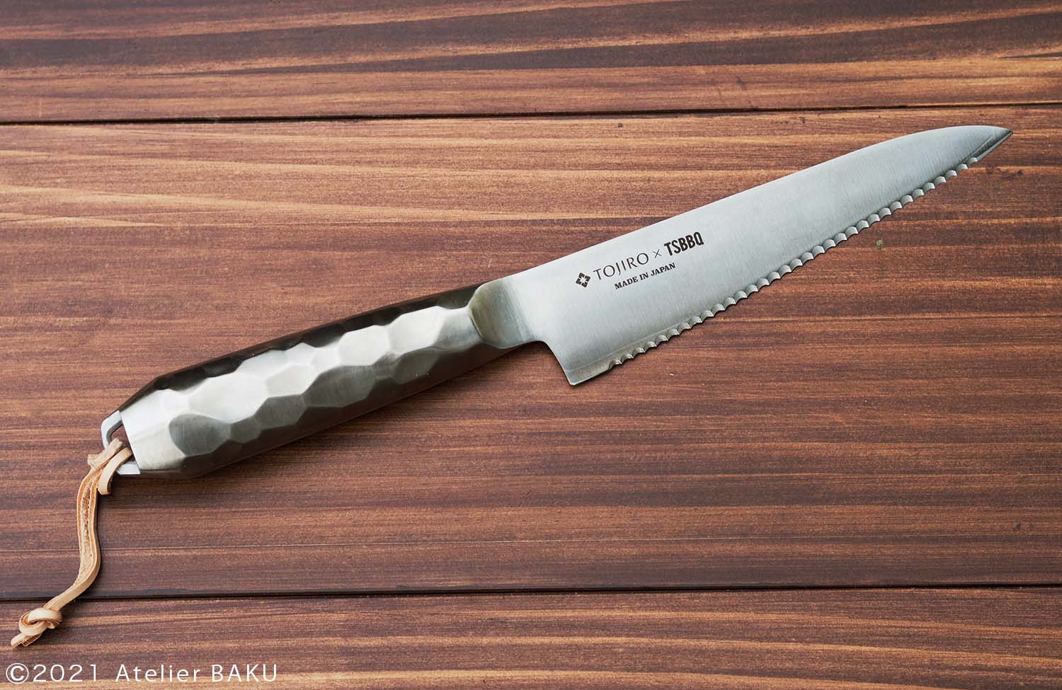 刀身には、「TOJIRO × TSBBQ」の刻印が。MADE IN JAPANの銘がその誇りを示しています。2021年度のグッドデザイン賞を受賞した実力の持ち主です。