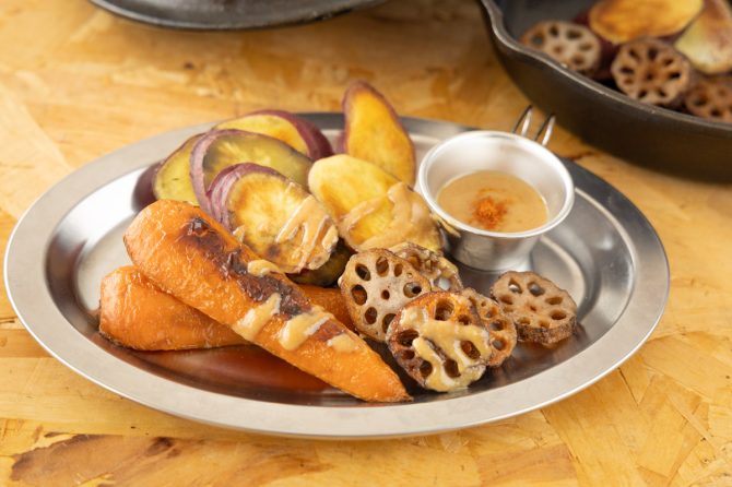 スキレットで作ろう!「根菜のグリル・ピーナッツバターソース添え」のレシピ