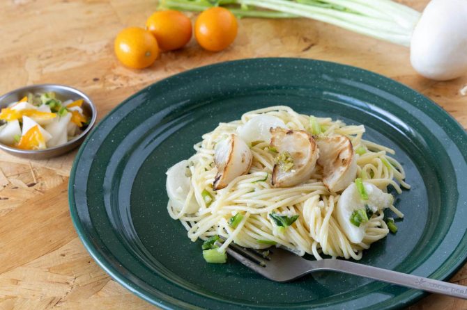 春かぶを丸ごと味わう!ワンパンで作れる、かぶの柚子胡椒パスタと、かぶと金柑のラぺ