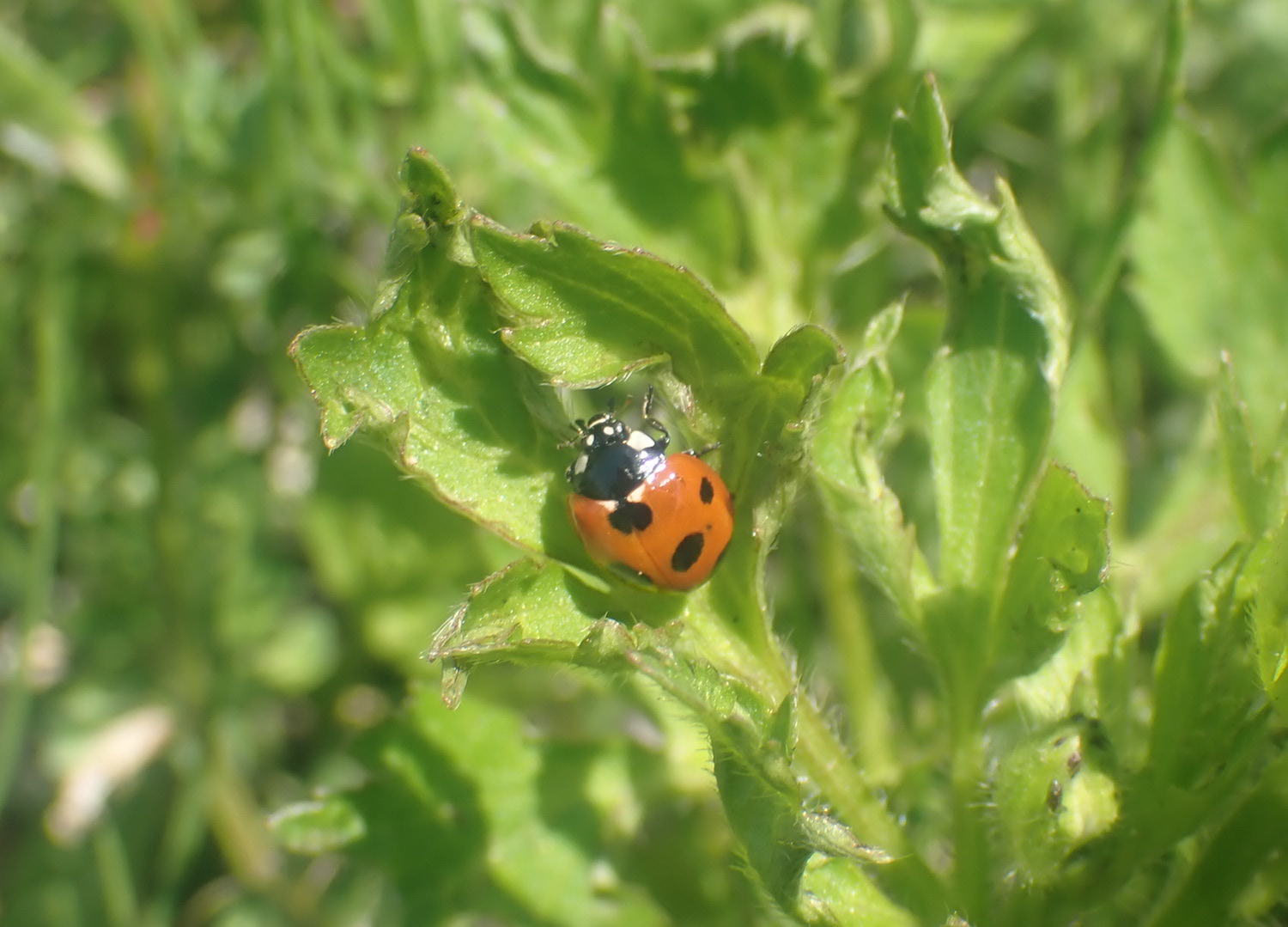 今回は、普段よく目にする「ナナホシテントウムシ」にスポットを当てて観察してみました。ナナホシテントウは、名前の通り、背中に7個の黒い点のあるテントウムシです。