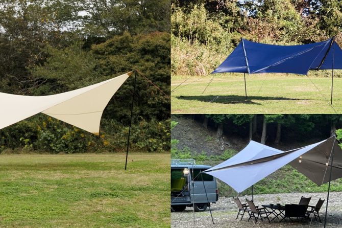 | 付属品 | メインポール×2本、サイドポール×4本、張り綱(長×4本、短×8本)、ペグ×12本、ハンマー |