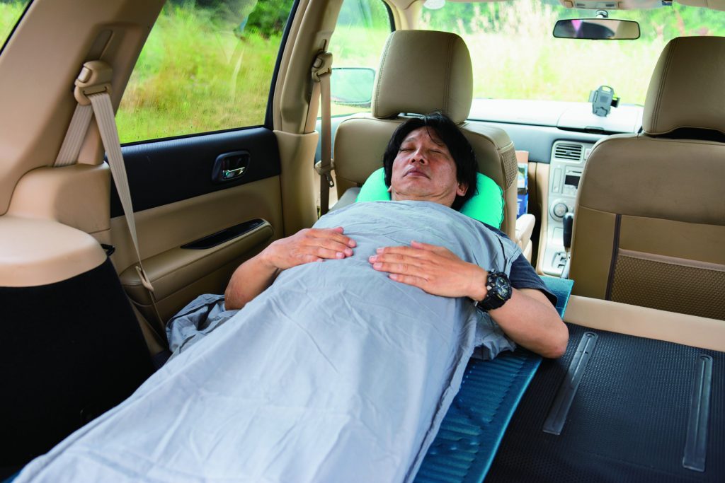 キャンプ以外にも、飛行機や電車、車での仮眠など使いたいときにバルブを開けるだけで心地よい睡眠がとれます。