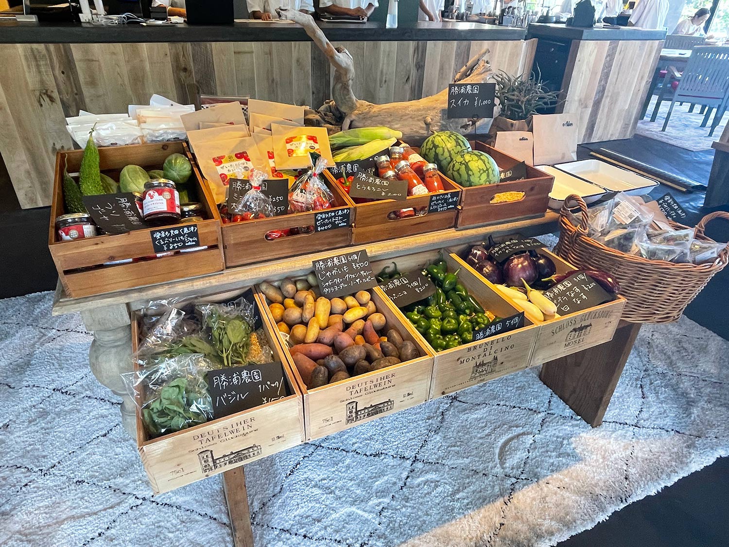 1階に入ってすぐの場所に広がるショップのコーナーでは、勝浦を始めとする千葉県産の野菜やお土産、名産品など選りすぐりの商品を販売。