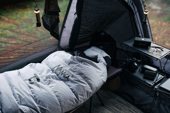 100%コットン素材の幕体には撥水抗カビ加工が施されているが、水を含むと糸が膨張して目が詰まることで自然と防水性が高まる。濡れたあとは十分乾燥させることが長持ちさせる秘訣だ。