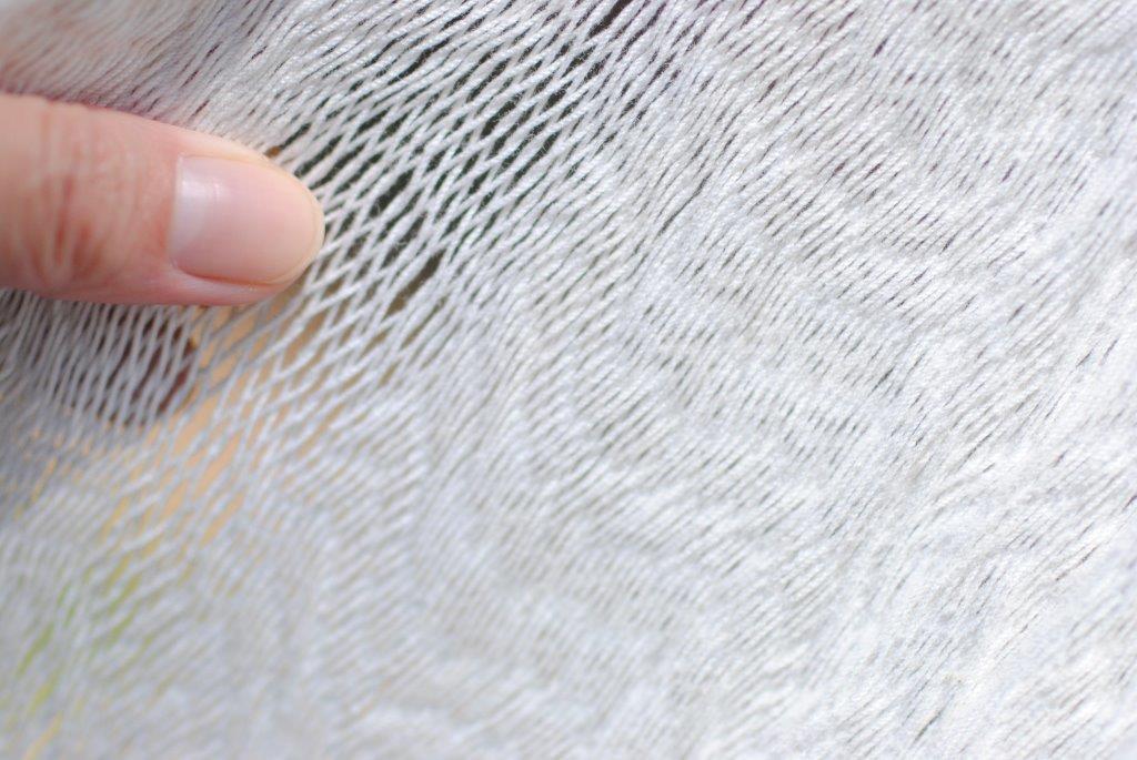 ▲2.5mmほどのちょい太めの糸を使った伝統的な網目。穴が大きい分、よく沈み込む。