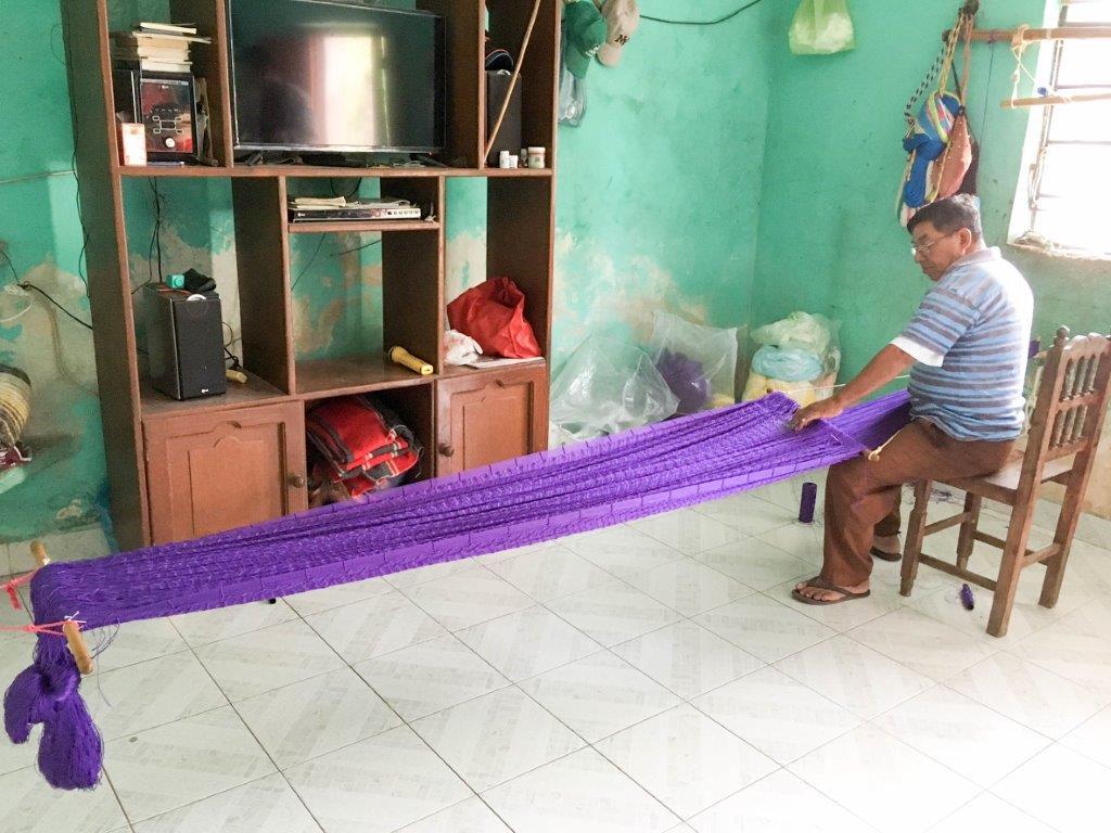 さらに、どんな場所でどうやってハンモックをつくっているのかと教えてもらうと、マヤの人々は、家の中で、しかも、本当に手のみでつくっているとのこと。