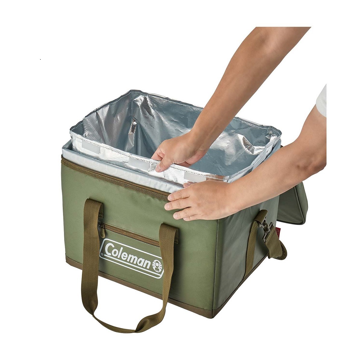 約42時間の保冷力で1泊2日以上のキャンプやアウトドアに最適。耐水圧25,000㎜で雨にも強い。冷気を逃さないために、蓋に小窓が付いていて必要なものだけ取り出すことが可能。ハードクーラーとの併用に便利なハンドルスリーブも付いている。