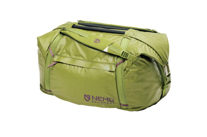 頑丈で悪天候にも強いダッフルバッグ。90L以外にも、40L、70L、130Lと4サイズで展開。使用しない時には取り外しができるショルダーストラップでバックパックとして使うこともできる。