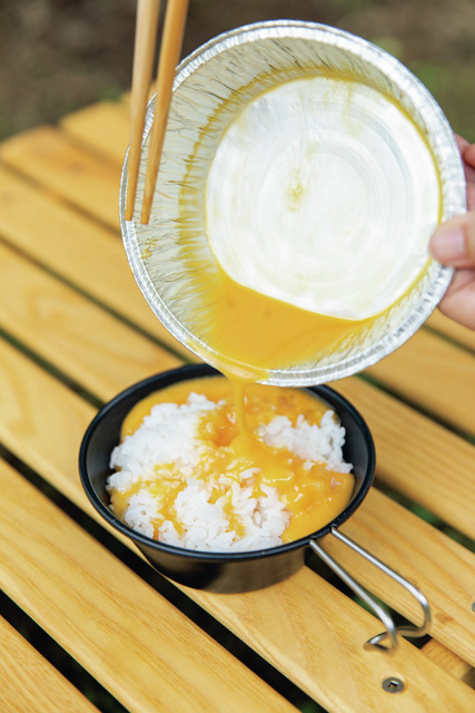 燻製した頭とアラを鍋に入れ、お湯で煮出して出汁をとり、器にご飯とほぐしたタイの身を乗せたら、出汁をかけましょう。タイの出汁に燻煙が滲み出たコク旨な仕上がりです。