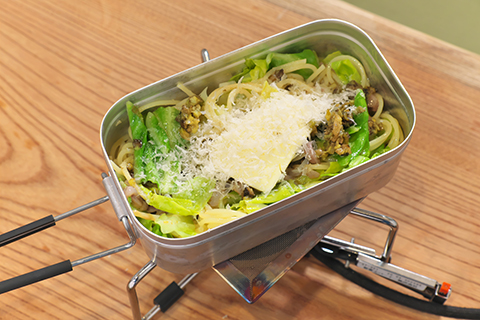 炊飯目安は約1.8合。携行性を考え薄いアルミを使用しているため、過度な強火は避けましょう。小物入れにも便利。