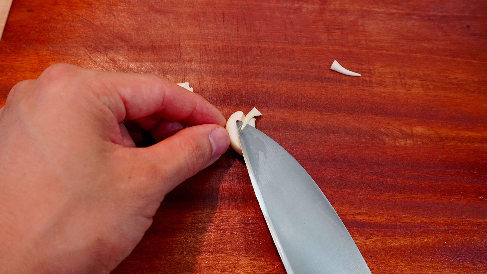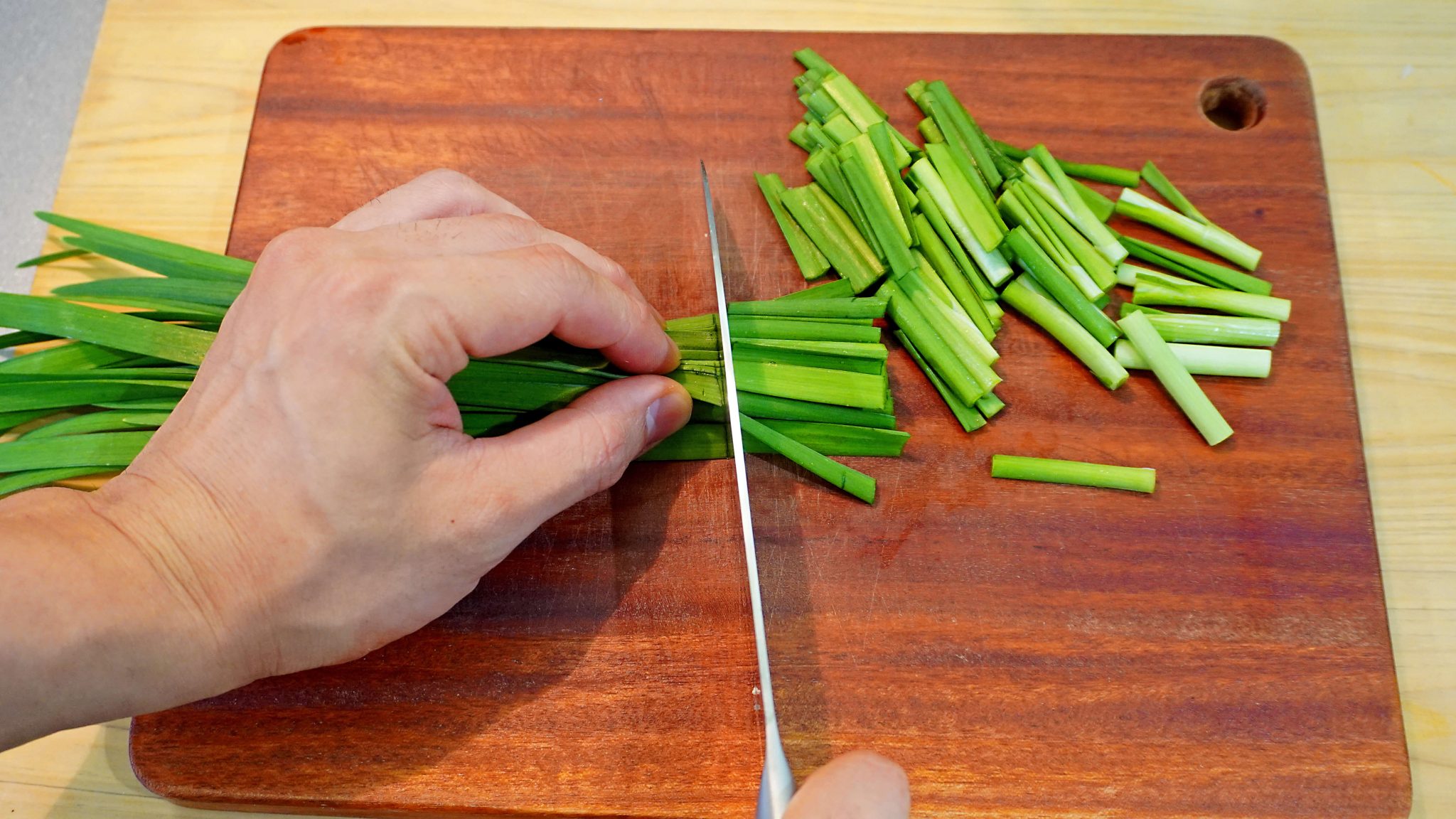 【1】まずは、長ねぎを斜め薄切りにしましょう。