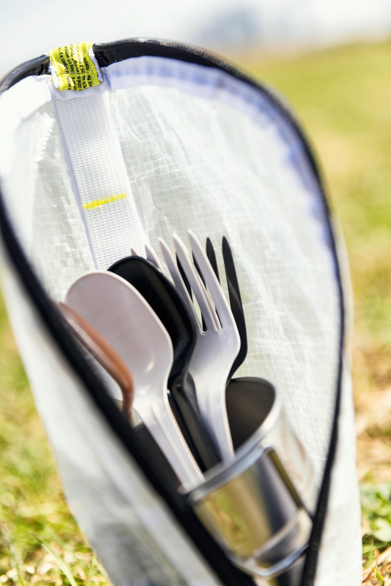 軽くて汚れが付きにくく、水を通さないPE(ポリエチレン)素材を使用したカトラリーケース。4人分を収納できる大きさも◎。