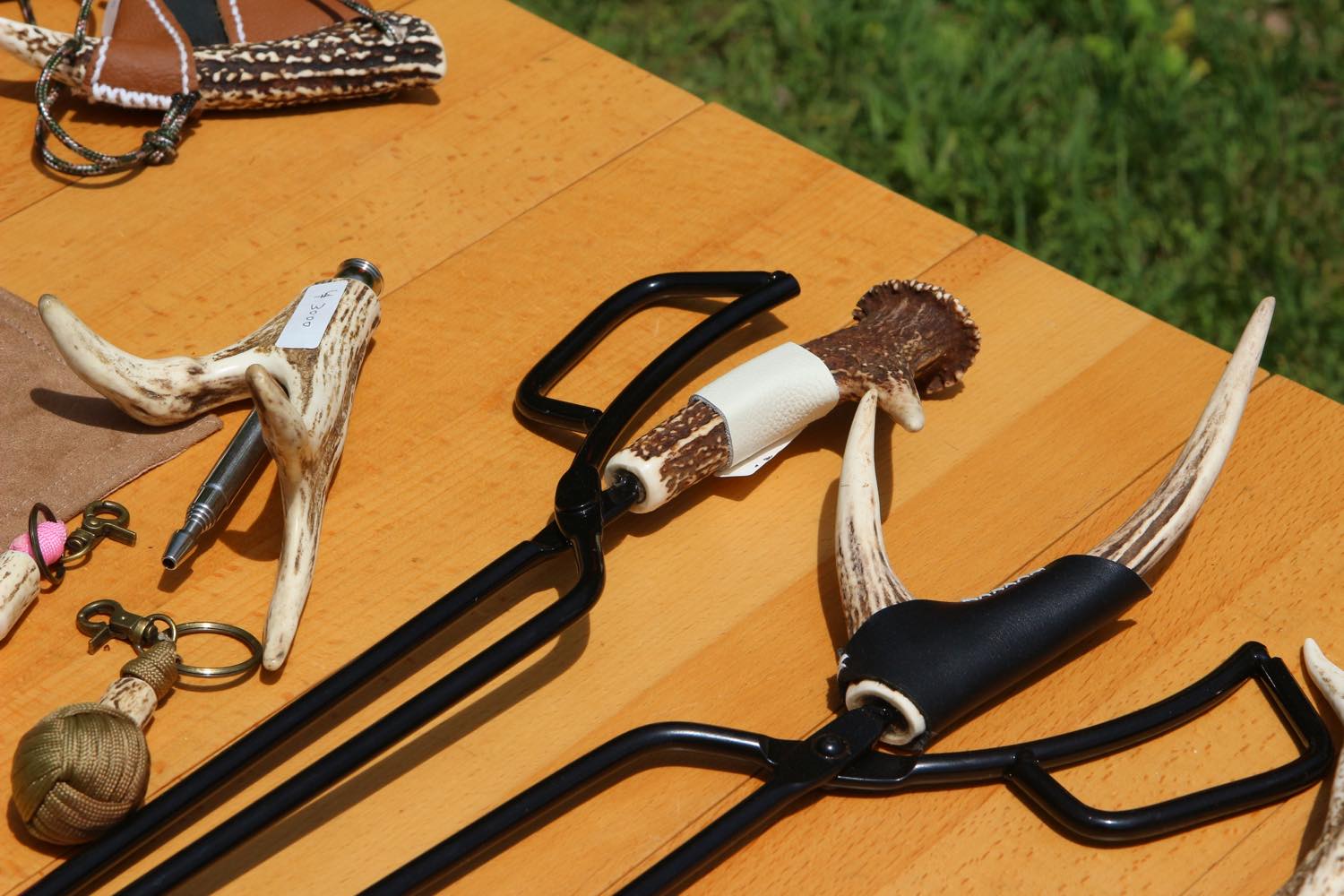 狩猟クラフト工房「しかつの屋」は、シカの角を切ったり穴をあけたりしてオリジナルアイテムを作るワークショップを開催。