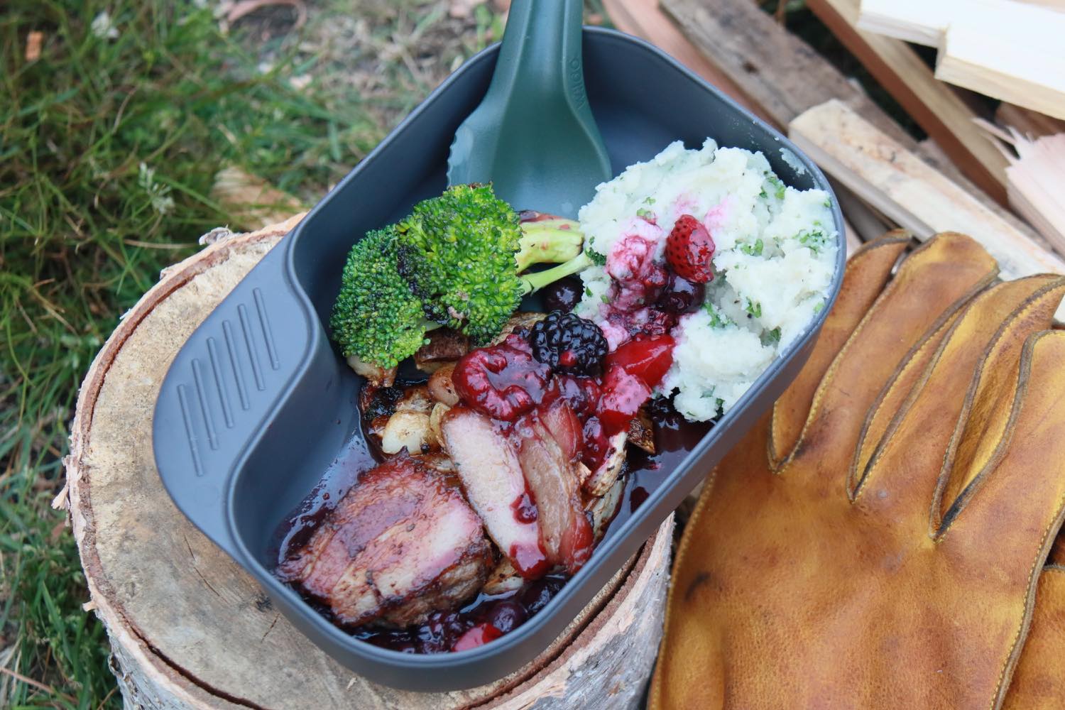 ミートボールと清里で採れた野菜たちを、北欧生まれ「ダーラム」の脚付きグリドルでじっくりグリル。ベーコンは火にかける前に細かく刻んでミートボールに混ぜ込んでも、ベーコンでミートボールを挟んで食べてもどちらでもよし。