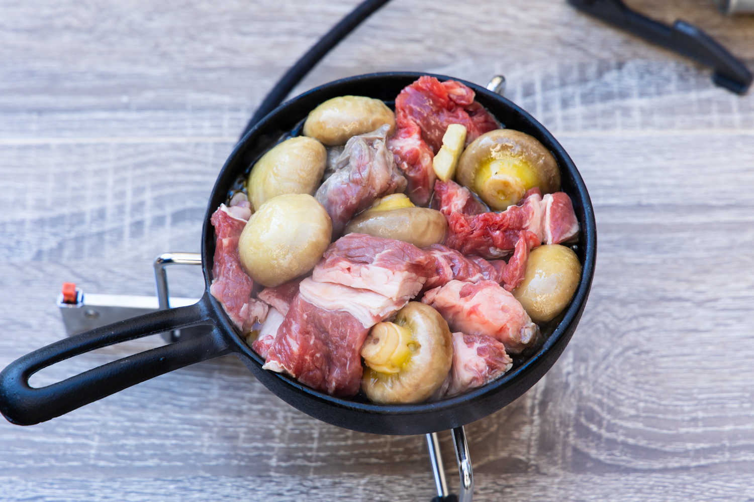 肉料理を食べるなら、がっつりステーキがいい!という人も多いでしょう。料理が冷めやすい屋外では、オイルを使うのがポイント。冷めにくい上に、手頃なお肉でも固くなりにくいメリットがあります。