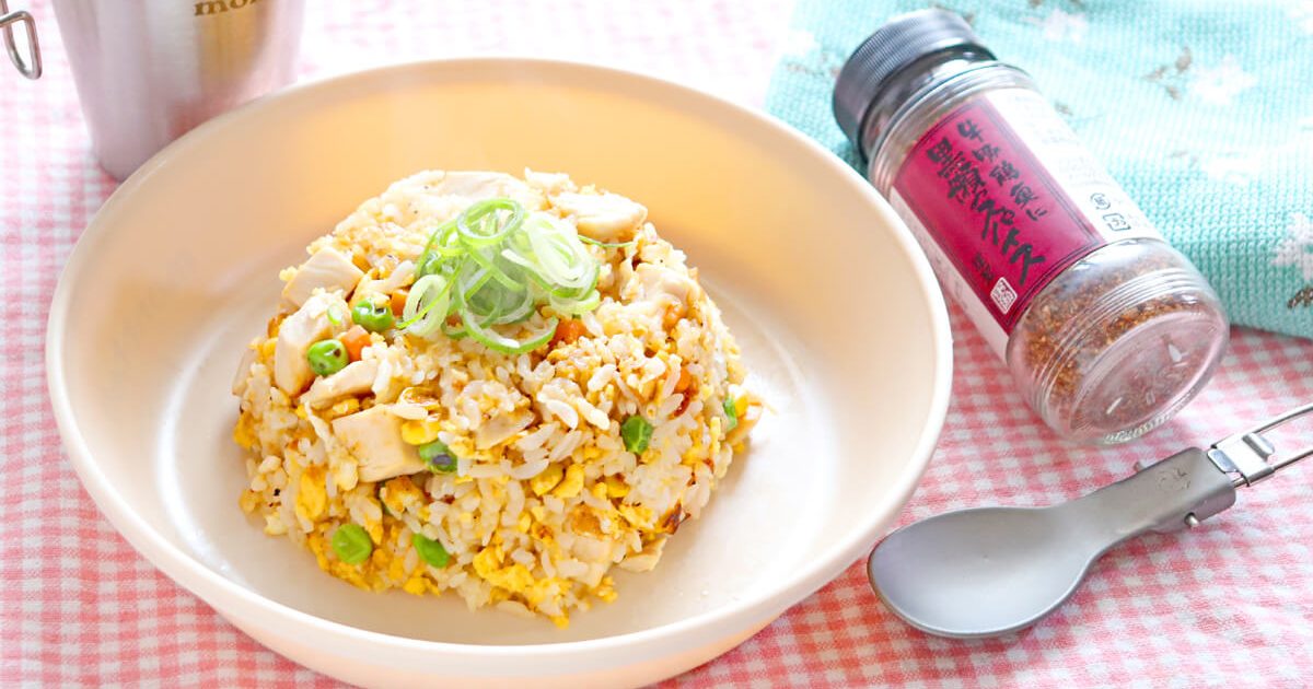 回しがけした焼き肉のたれと、ご飯、具材をよく混ぜ合わせます。塩とブラックペッパーを加え、味をととのえたらできあがりです。