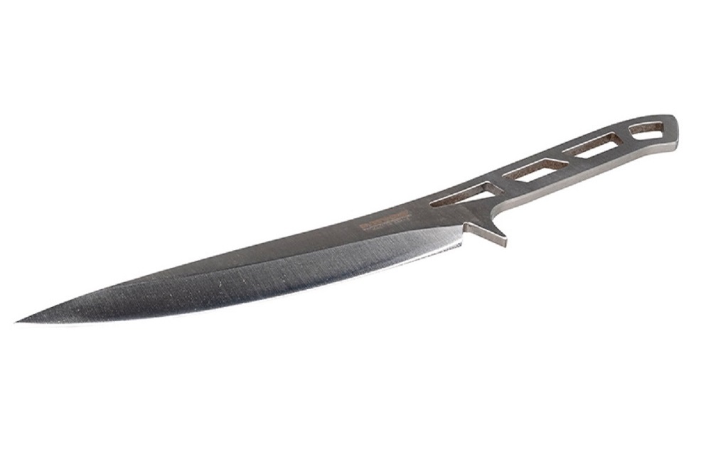真ん中から根元にかけては分厚く打撃に強いハマグリ刃、刃先にかけてはだんだんと刃を薄く仕上げ、包丁の刃付けをしている。関のナイフ職人がハンドメイドで製作する。藪を漕ぎつつ料理もでき、まさに一石二鳥!
