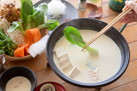【2】豆乳、サラダ油を入れてさらに混ぜます。