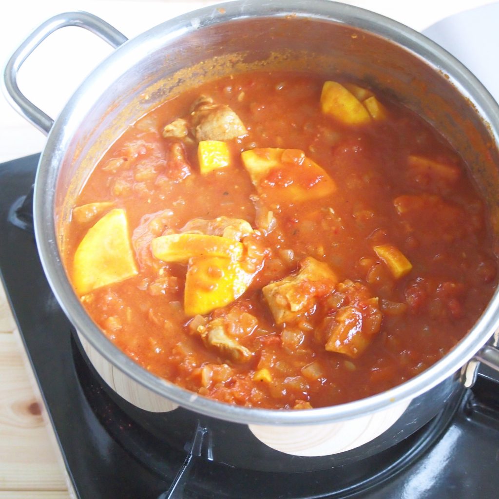 【8】蒸されたら、火加減を中火にして水分を飛ばします。