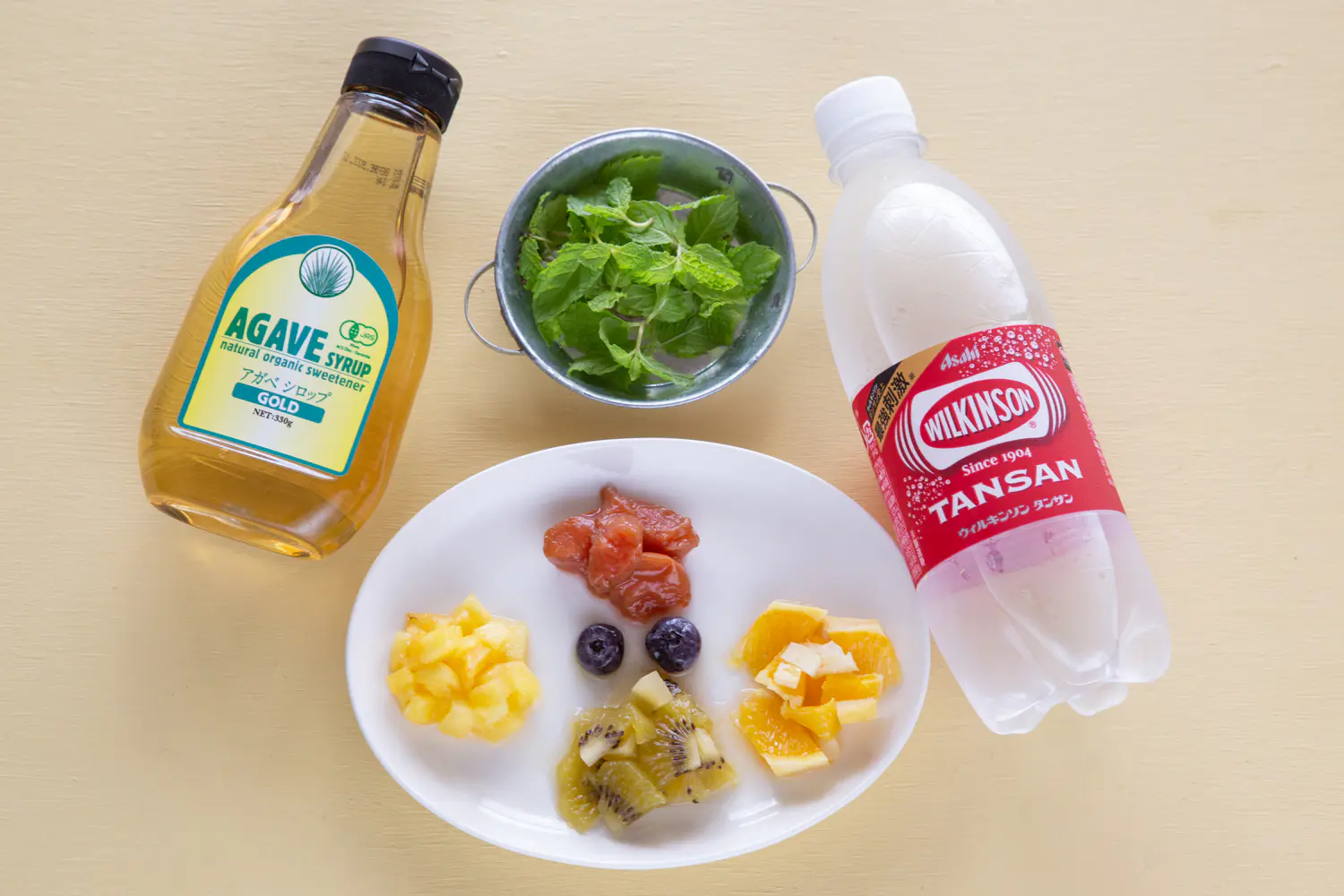 作り方は簡単!フルーツビネガーにつけ込んだフルーツを材料に、炭酸などを足して凍らせるだけです。
