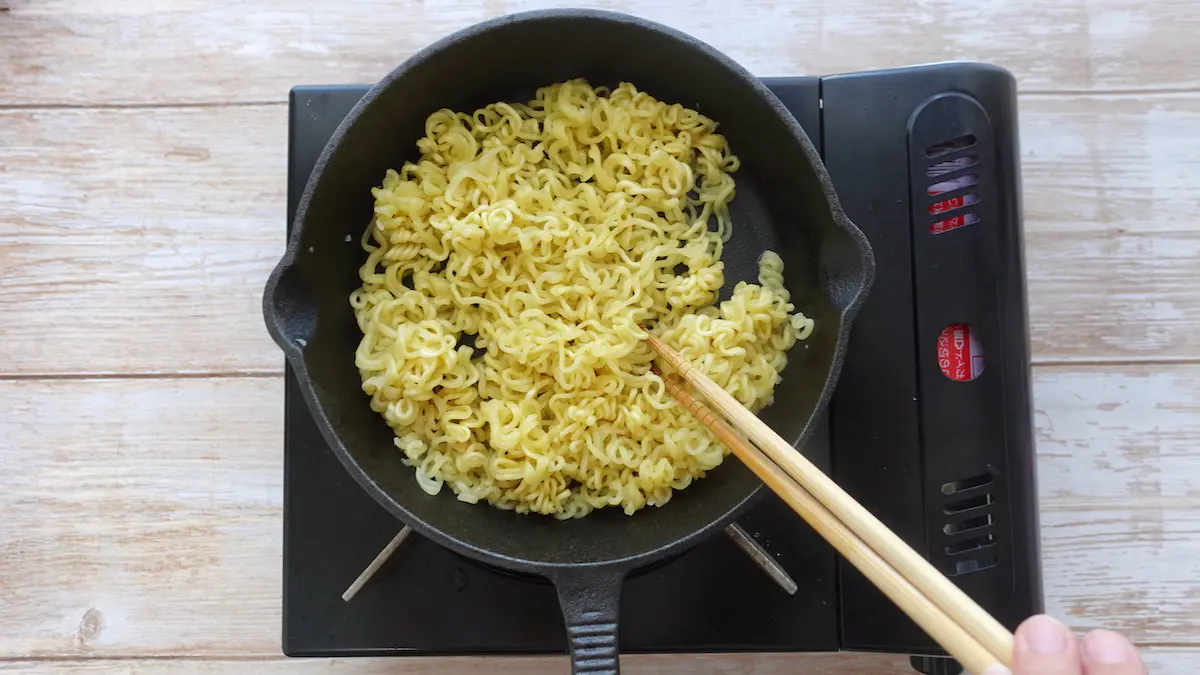 辛ラーメンを焼きそば風に!