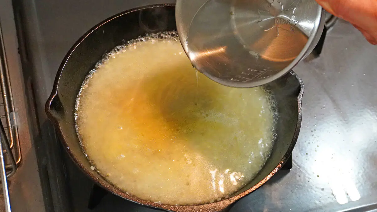 水150ccをスキレットに入れ、お湯を沸かします。