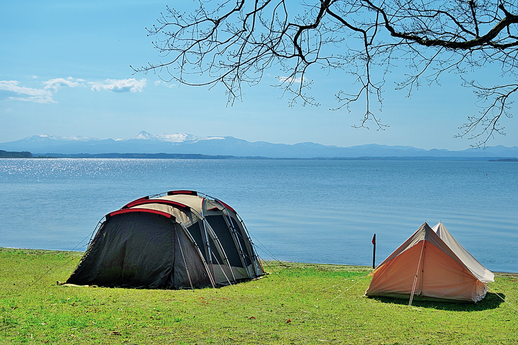 磐梯山が一望できる猪苗代湖畔にある老舗のキャンプ場。オートサイトは湖畔、林間などバリエーションが多い。