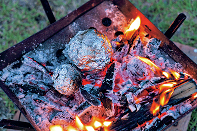 果物を皮のままアルミホイルに包み、炭火でじっくり蒸し焼きすると甘みがUP。ご当地ジェラートと。