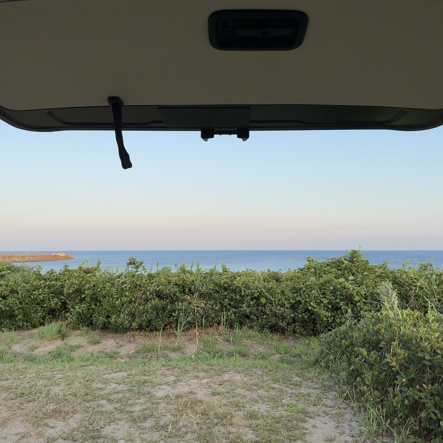 ただし、私のクルマは家庭用エアコン未搭載、また黒に近いボディカラーのため、昼の直射日光をためた車内はものすごく暑い!ルーフベント×窓×ハンディファンで風の流れを作り、なんとか就寝しました。